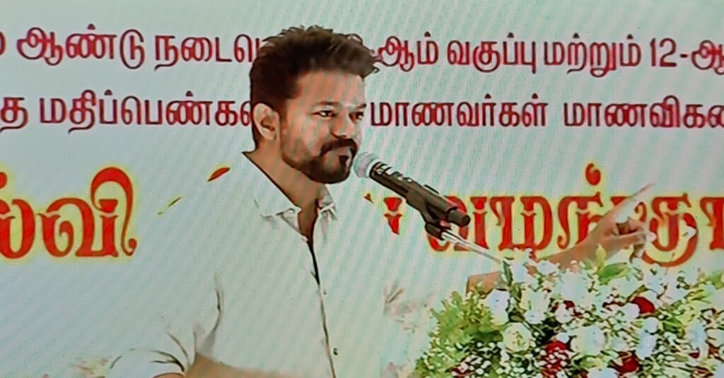 சென்னை நீலாங்கரை பகுதியில் நடிகர் விஜய் செய்திருந்த கல்வித் திருவிழா நாடு முழுவதும் பேசப்படும் விழாவாக ஆகியிருக்கிறது. 10 மற்றும் 12- ம் வகுப்புகளில் முதல் மூன்று இடத்திற்கான மதிப்பெண் பெற்ற மாணவர்களுக்கு பாராட்டு பத்திரமும், உதவித் தொகையும் என தொகுதிக்கு மூவர் என்ற கணக்கில் மாணவர்களை 234 தொகுதிகளிலும் இருந்து கொண்டு வந்து நிறுத்தியது மிக சிறப்பு. விழாவில், 600/600 மதிப்பெண் பெற்றிருந்த மாணவி நந்தினிக்கு பாராட்டு பத்திரத்தோடு வைர நெக்லஸ் வழங்கி பாராட்டினார் நடிகர் விஜய். ஐயாயிரம் மாணவர்களை ஒரே இடத்திற்குள் கொண்டு வந்து நிறுத்தியும் விழாவில் சிறு சலசலப்பும் நிகழவில்லை. எல்லாவற்றுக்கும் மொத்தமாய் சேர்த்து வைத்து தளபதி விஜய்யின் பேச்சு உண்டாக்கியதுதான் உள்ளபடியே சலசலப்பு என சொல்ல வேண்டும்.