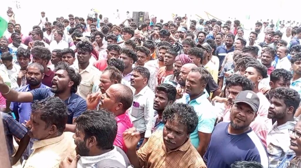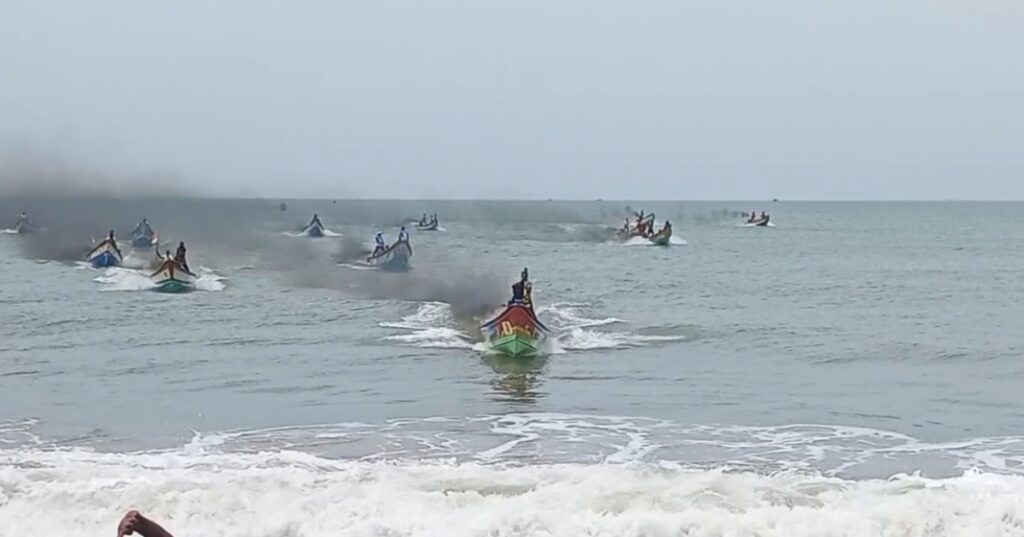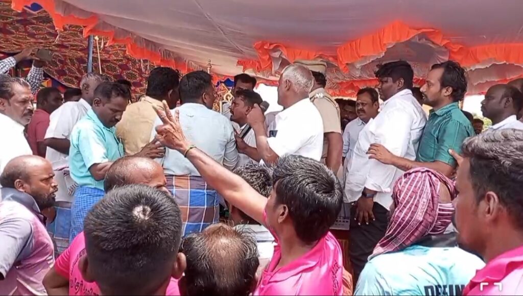 கடலில் நடப்பட்டுள்ள மூன்று கொடிகளை சுற்றி வர வேண்டும் என நிபந்தனை இருந்த நிலையில் அங்கு நடப்பட்டிருந்த மூன்று கொடிகளை சுற்றி வந்த தங்களுக்கு பரிசுகளை தராமல் ஒரு கொடியை மட்டும் சுற்றி வந்த படகுகளுக்கு பரிசுகள் வழங்குவதா என எதிர்ப்பு தெரிவித்து. விழா மேடையில் இருந்த சட்டமன்ற உறுப்பினர் துரை சந்திரசேகரை முற்றுகையிட்டு வாக்குவாதத்தில் ஈடுபட்டனர். இதனால் அங்கு பதற்றம் ஏற்பட்டதை தொடர்ந்து காவல்துறையினர் தலையிட்டு போராட்டத்தில் ஈடுபட்ட செம்பாச்சி பள்ளி மீனவர்களை சமரசம் செய்யும் முயற்சியில் ஈடுபட்டனர்.