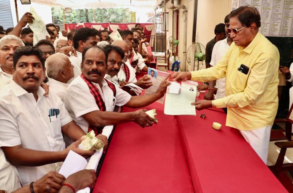 அப்போது விருப்பக் கட்டணத் தொகையான 25 ஆயிரம் ரூபாயை 20 ரூபாய் நோட்டுகளாக மாற்றி 1225 நோட்டுகளாக அறிவாலயத்தில் மருது கணேஷ் அளித்தார்.