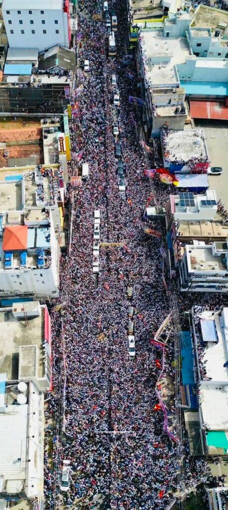 இதே கரூரில், இப்படியான பிரமாண்ட மாநாட்டை, ஆளுங்கட்சியான திமுக, கொஞ்ச நாள்களுக்கு முன்னர் நடத்தியது; காயம் இல்லை; மயக்கம் இல்லை; அதிகபட்சமாய் யாரும் சாகவில்லை; எப்படி இது சாத்தியப்பட்டது என்று யாராவது ஒரு கரைவேட்டியை கேட்டு அறிந்து கொண்டிருக்கலாம். அதுவும் பிடிக்கவில்லையா, அதிமுக தரப்பில் கேட்டிருந்தால்கூட சொல்லி இருப்பார்கள்; இதைவிட பலமடங்கு பிரமாண்ட கூட்டம்- மாநாடுகளை போட்ட கட்சி அது…